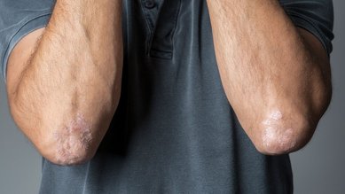 Schuppenflechte ist eine entzündliche, nicht ansteckende Hauterkrankung. Typisch ist eine rötliche, schuppende Haut, die jucken kann.